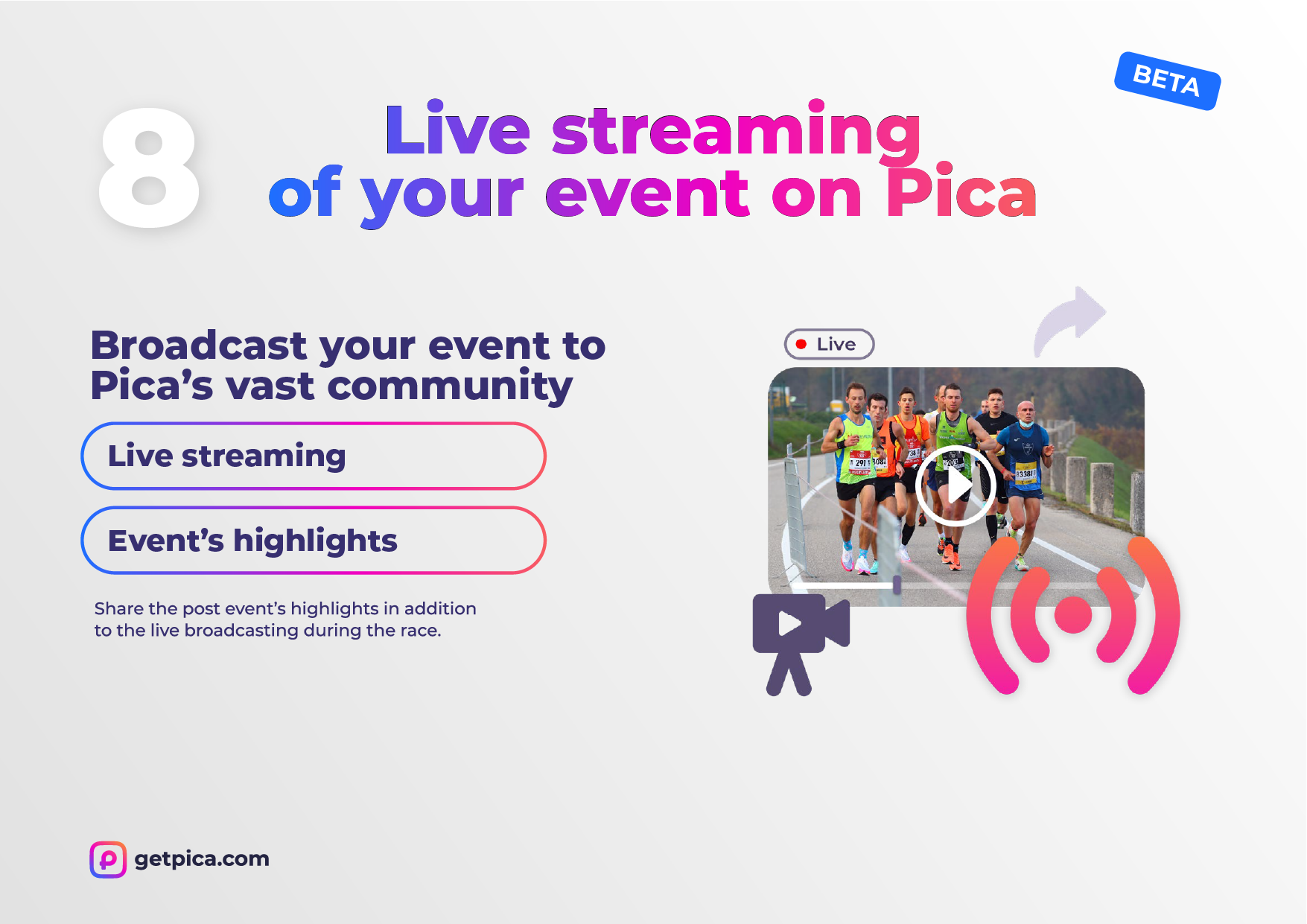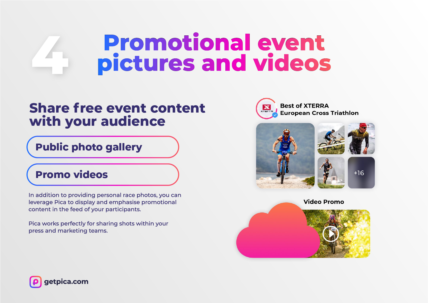 Your storiesin your hands Find out the 10 reasonswhy Pica is the bestphotos and videosdelivery platform forendurance events. Thanks!getpica.com